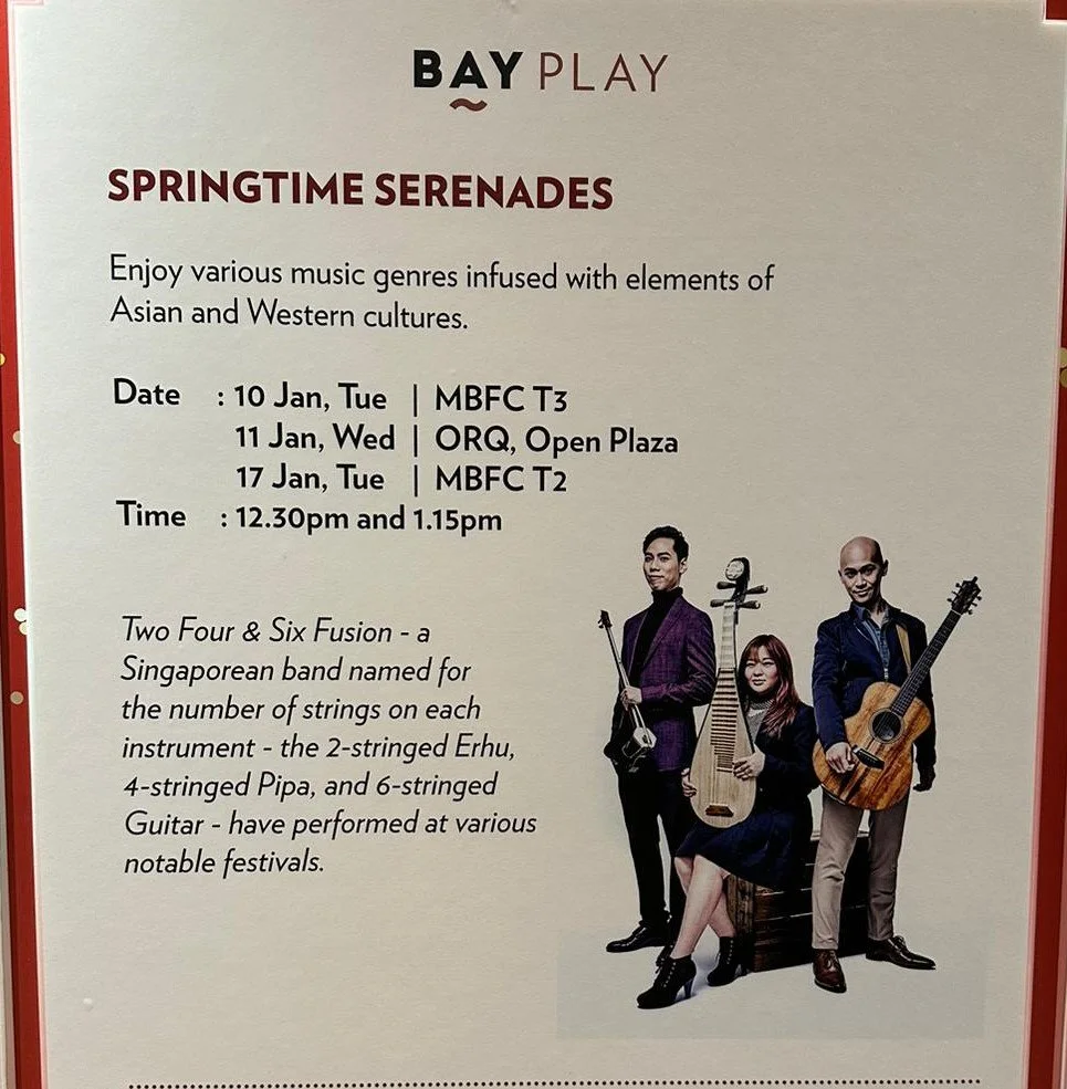 Enjoy a mix-mash of Chinese New Year classics as well as upbeat English and Mandopop songs played by Two Four and Six Fusion!